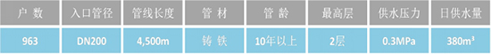 通过对该小区的入口压力以及不利点的压力进行分析发现:区域入水口日平均压力0.3MPa,高压力可达0.34MPa,低压力为0.26MPa左右, 不利点压力与区域入口压力之间的水头损失在日用水高峰期间为0.1MPa左右,夜间0.01MPa左右。